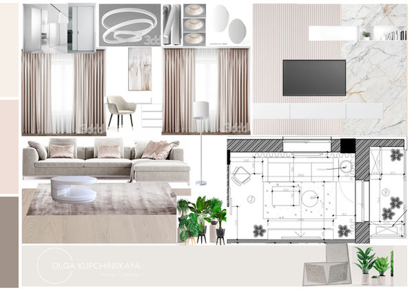 Основная идея проекта: Комфортный интерьер без лишней мебели, декора. Светлый, функциональный, нюансный, со своей изюминкой.